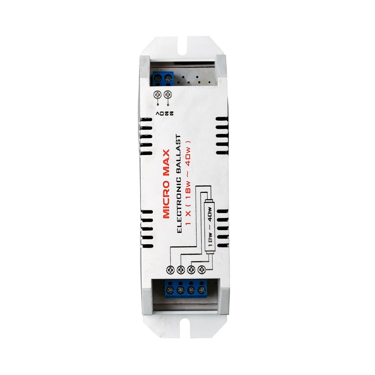 بالاست 40×1 میکرومکس جهت راه اندازی یک مهتابی 40 وات مورد استفاده قرار میگیرد. بالاست الکترونیکی میکرومکس موجب کاهش 25% تا 40% مصرف برق می شود و از دیگر مزایای آن می توان به استفاده از حداکثر راندمان نوری لامپ، بدون صدا، لرزش و حرارت اشاره کرد.